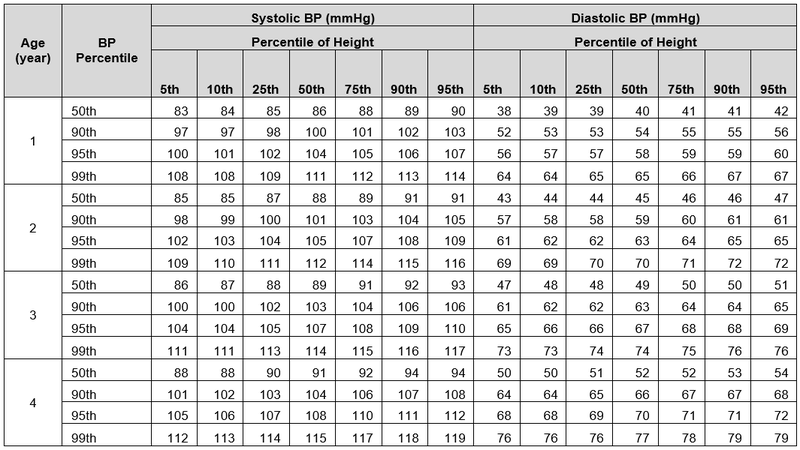 - Stage 1 hypertension: > 95th –99th percentile plus 5 mmHg.